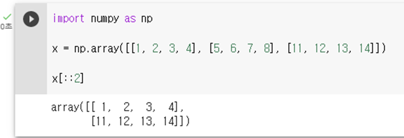 slicing을 통해 아래와 같은 형태를 얻으려면 어떤 명령어가 필요한가?