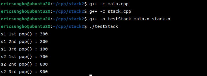 std::cout << "s2 2nd pop() : " << s2.pop() <<std::endl;