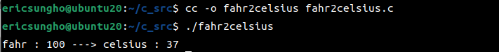 printf("fahr : %d ---> celsius : %d\n", fahr, celsius);