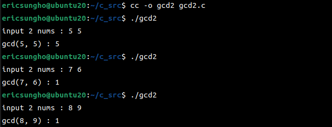 printf("gcd(%d, %d) : %d\n", a, b, result);