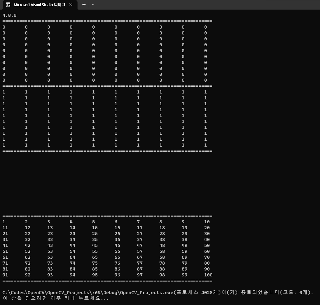 cv::Mat mat5 = mat1 + mat4; // 두 행렬의 합