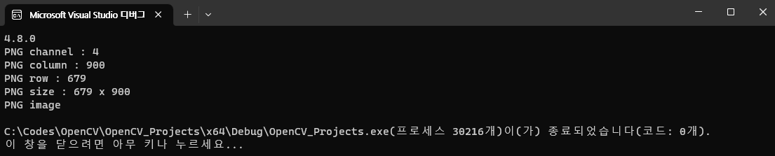 std::cout << "PNG row : " << img1.rows << std::endl; // row 수 반환