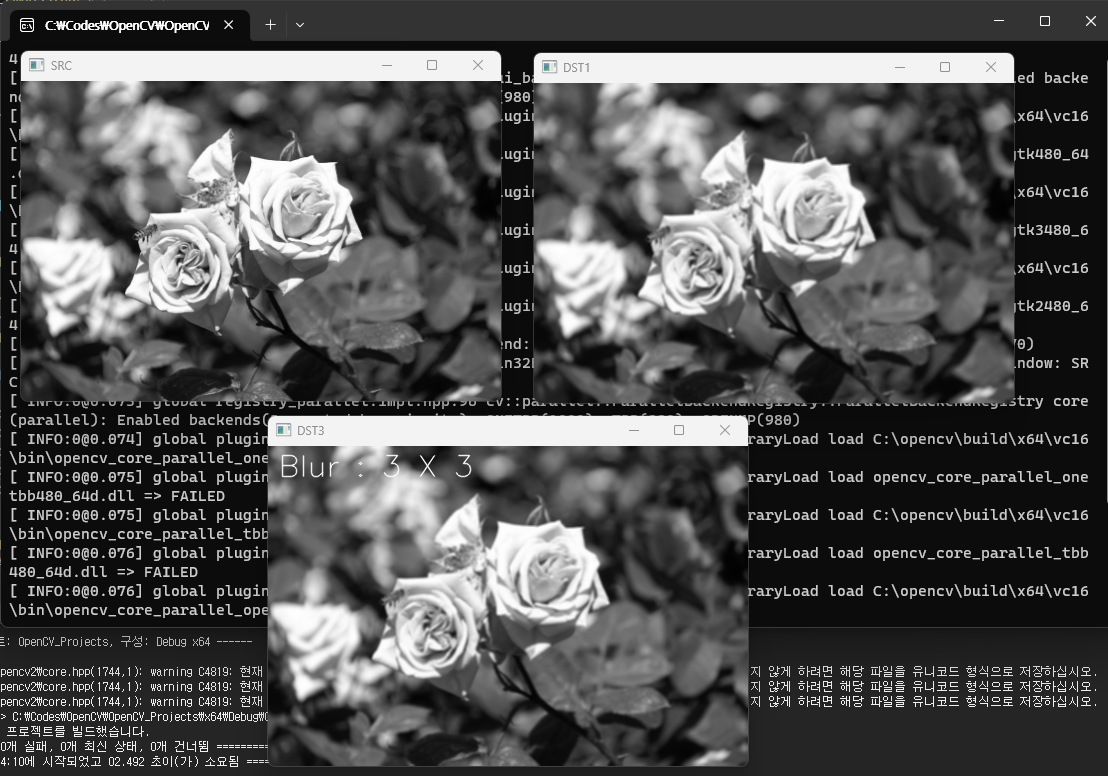 imshow("dst1", dst1); // gaussian blur 가 적용된 이미지