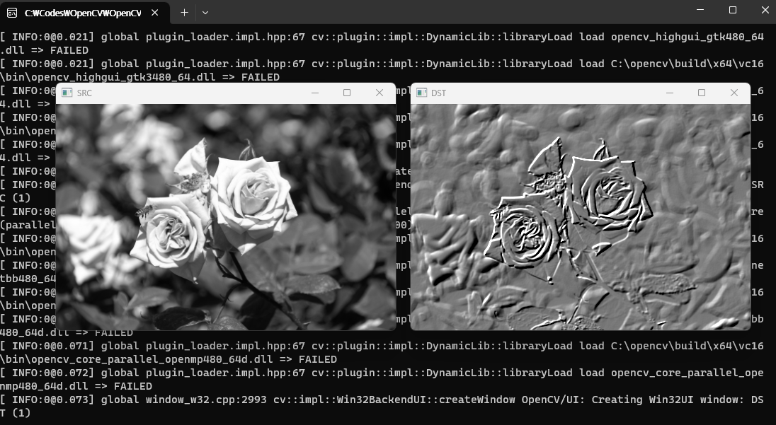 cv::filter2D(src, dst, -1, emboss_kernel, cv::Point(-1, -1), 120 /*좀 더 밝게*/);