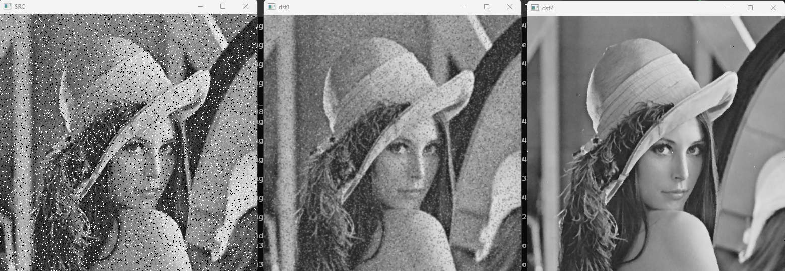 imshow("dst2", dst2); // median blur가 적용된 이미지