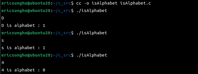 printf("%c is alphabet : %d\n", c, isAlphabet);