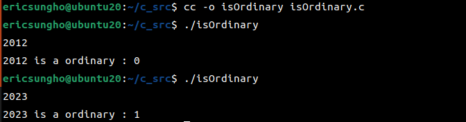 printf("%d is a ordinary : %d\n", year, isOrdinary);
