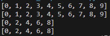 result = [i for i in range(10) if i % 2 == 0]