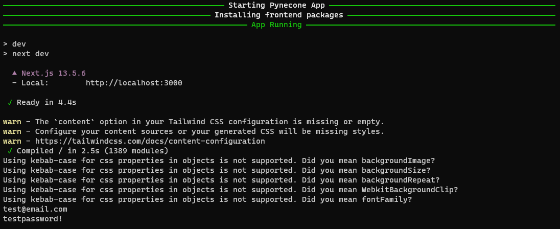 pynecone을 이용해 만든 UI에서 사용자 정보 (이메일 주소, 비밀번호)를 입력하면 그 정보가 그대로 입력되고 출력된다.