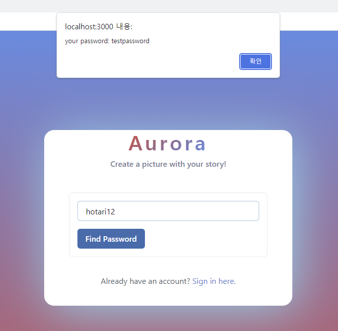 아이디 입력 후 가입된 아이디와 일치하면 비밀번호 알려주는 기능