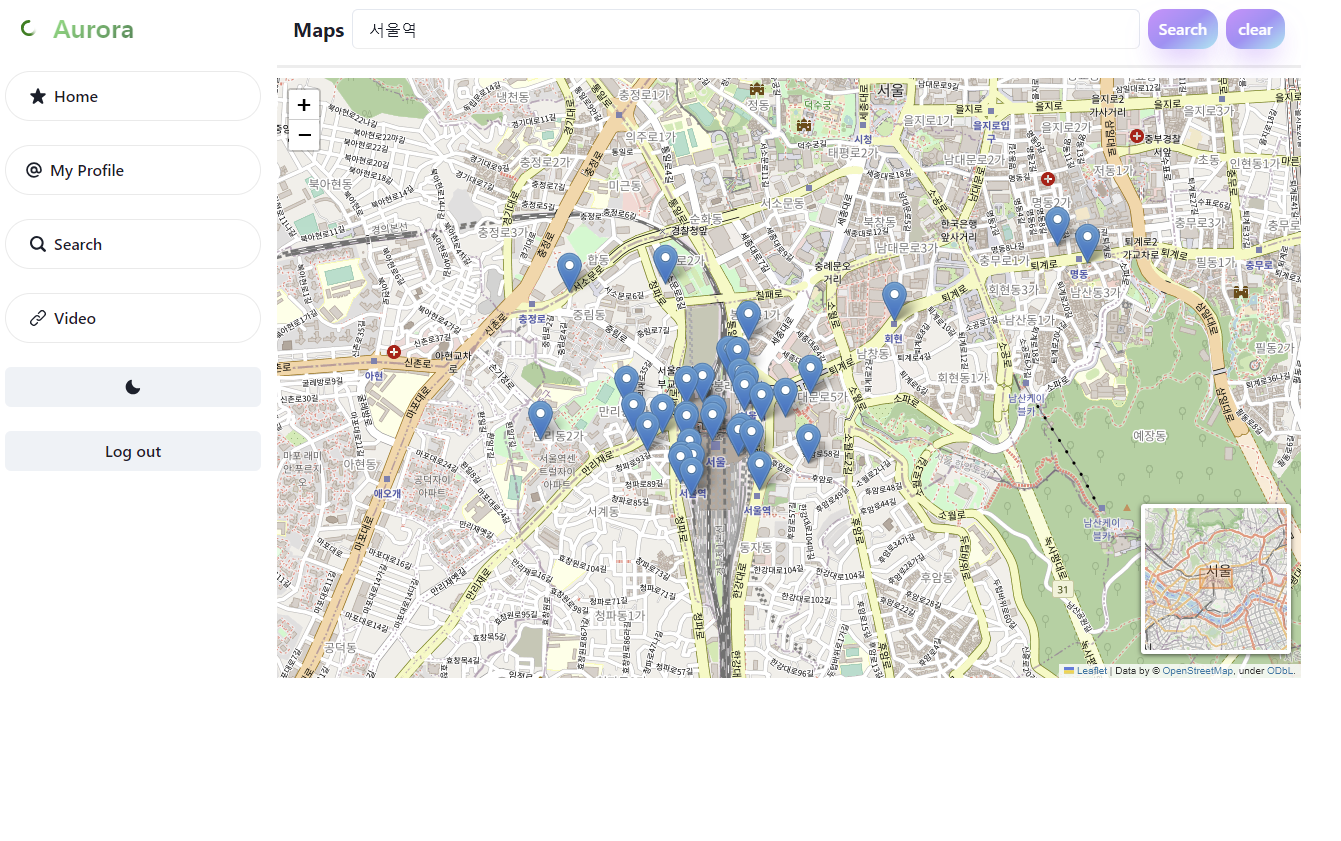 SNS-Project(8) (검색창, 실시간 검색어 순위 출력, 유튜브 동영상 재생, 지도 검색, 지역 마커 표시 기능 추가) 본문