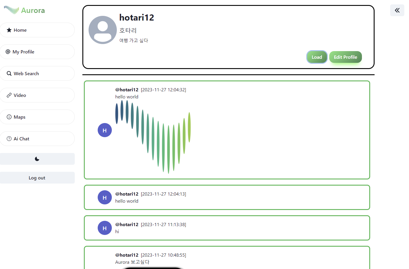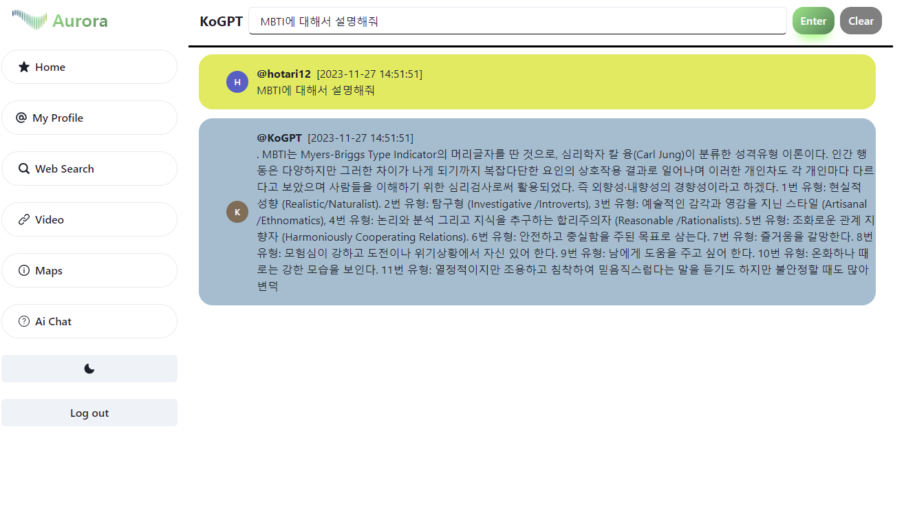 SNS-Project(9) (구글, 네이버, 다음 검색기록 불러오기, 지도 지역 검색, KoGPT 기능, 마이 프로필 페이지 닉네임, 상태메세지 설정, 아이디 사용자 게시물만 표시 기능 추가) 본문