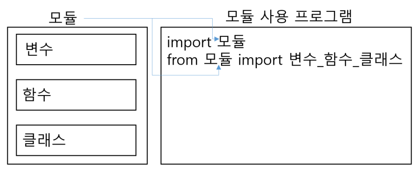 모듈_이름.함수_이름 또는 모귤_이름 형태로 사용 가능