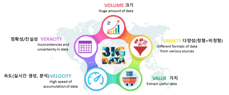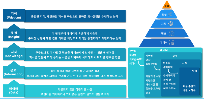 - 조직의 내외부에 존재하는 다양한 형태의 데이터를 수집, 처리, 저장하여