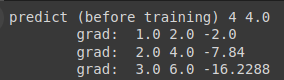 print("\tgrad: ", x_val, y_val, w.grad.data[0])