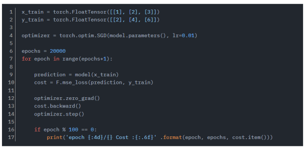 optimizer = torch.optim.SGD(model.parameters(), lr=0.01)