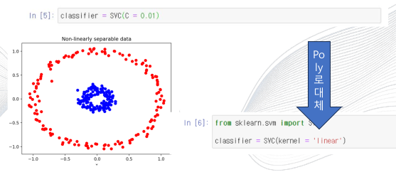 • 그리고 scikit-learn에서는 SVM 모델이 오류를 어느정도 허용할 것인지 파라미터 C를 통해 지정할 수 있다. (기본값은 1이다.)
