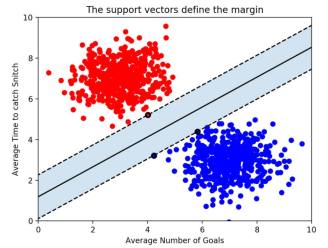 • 마진(Margin)은 결정 경계와 서포트 벡터 사이의 거리를 의미한다.