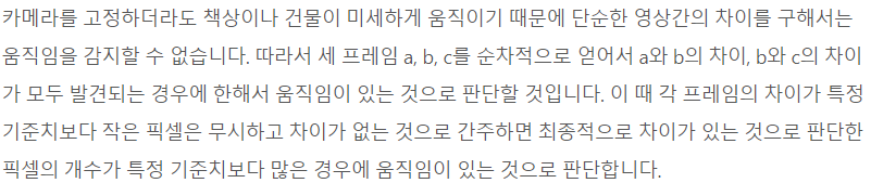 - 영상에서 영상을 빼기 연산하면 두 영상의 변화를 알 수 있음