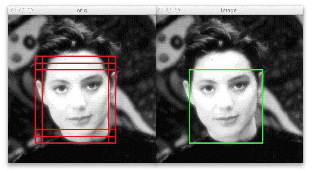 - 확률이 가장 높은 상자와 겹치는 상자들을 제거하는 과정