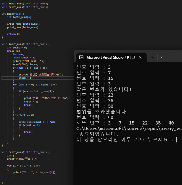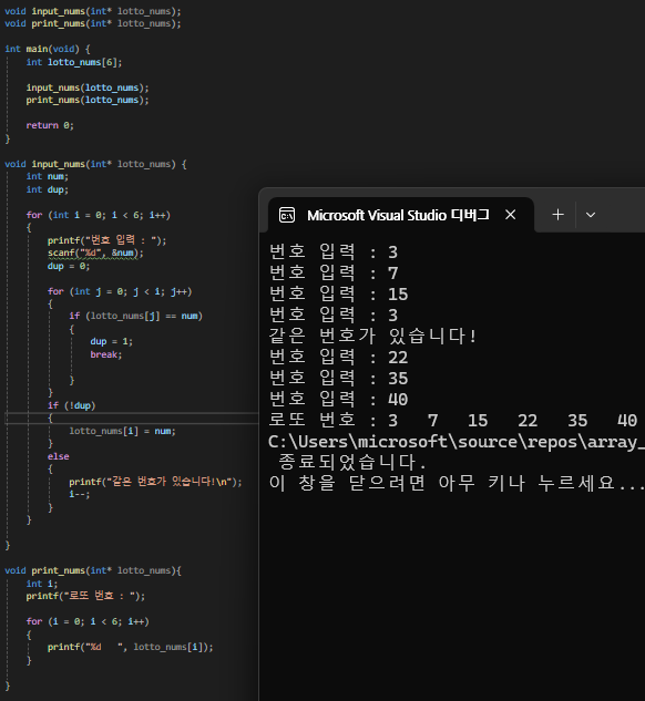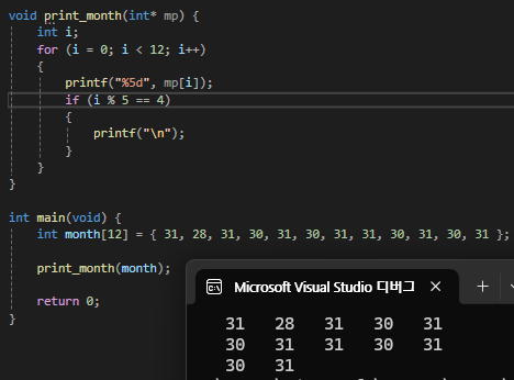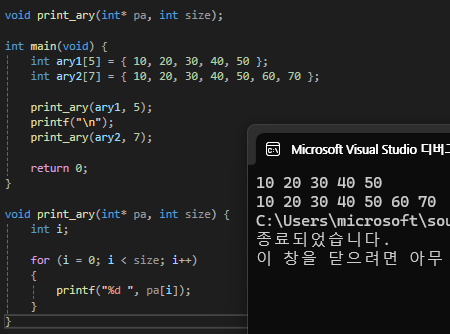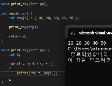 printf("앞에 있는 배열의 요소의 값을 출력 : ");