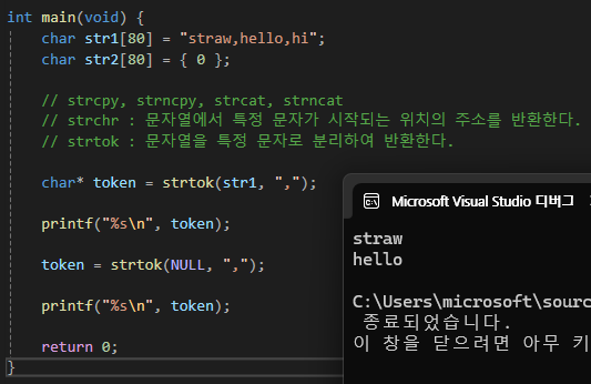 // strtok : 문자열을 특정 문자로 분리하여 반환한다.