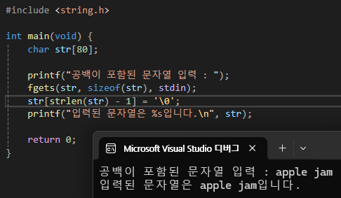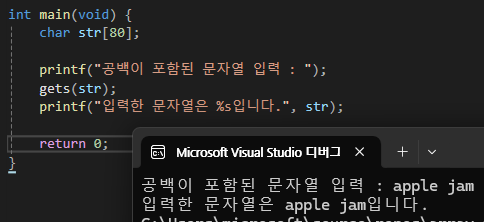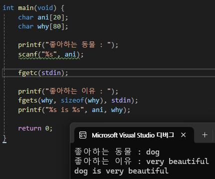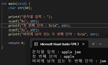 printf("버퍼에 남아 있는 두 번째 단어 : %s\n", str);