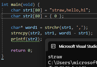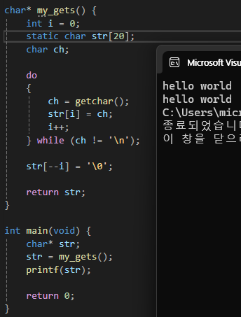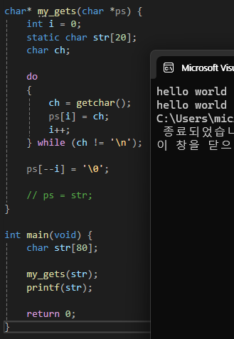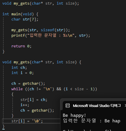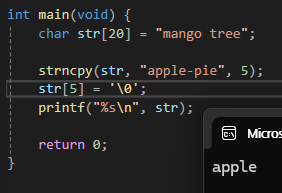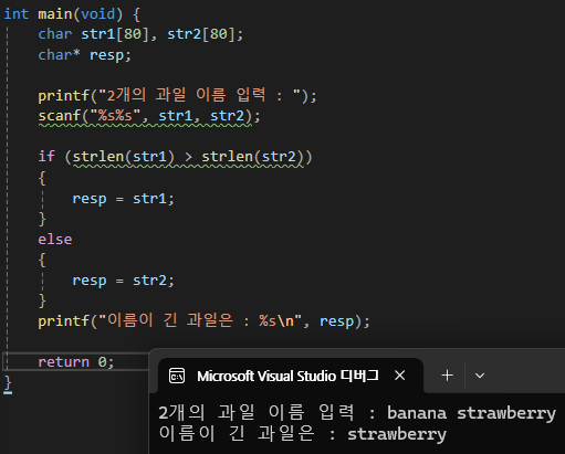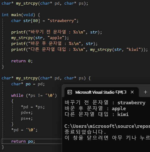 printf("다른 문자열 대입 : %s\n", my_strcpy(str, "kiwi"));