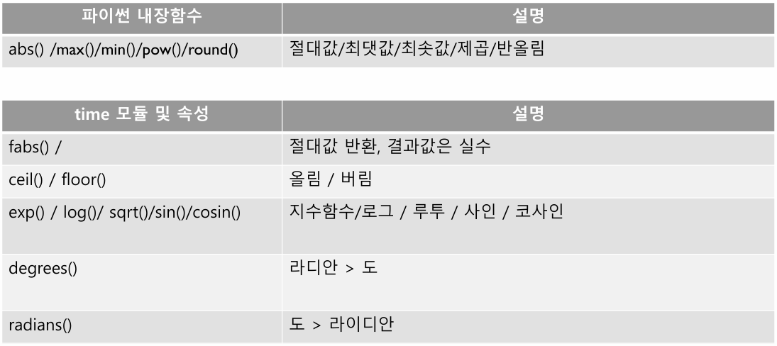 - 모듈별로 제공되는 함수를 확인하려면 dir() 사용함