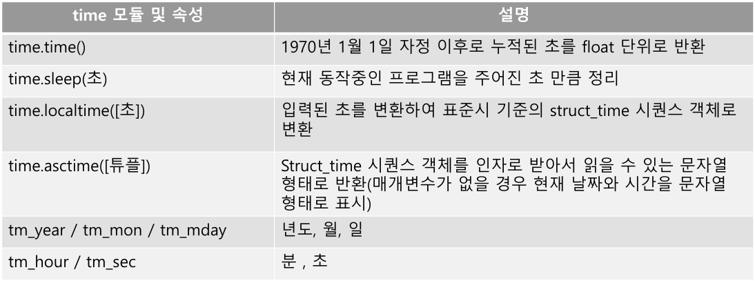 자주 사용되는 기능에 대해 파이썬의 제공 모듈을 이용하면 직접 특정 기능을 구현하는 것보다 쉽고 빠르게 프로그램을 개발할 수 있음