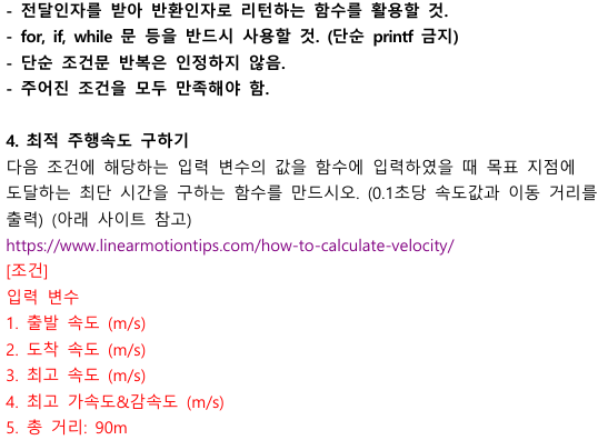 printf("도착 속도 (m/s): "); if (scanf("%lf", &vend) != 1) return 1;