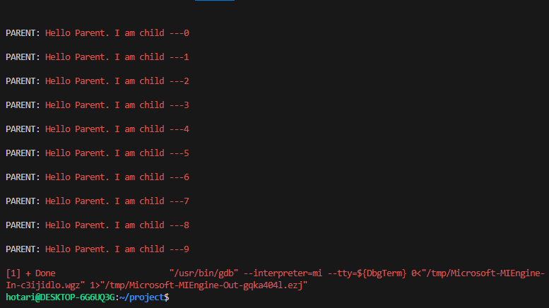 printf("\nhandler_pid [%d], handler_ppid [%d]\n", getpid(), getppid());