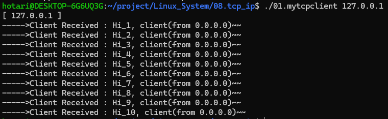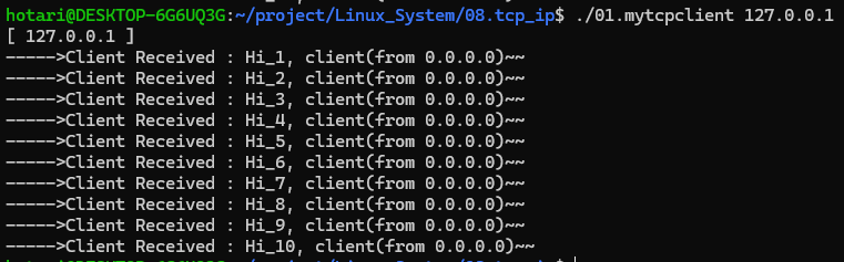 sprintf(tx_buf, "Hi_%d, client(from %s)~~\n", i, inet_ntoa(server_addr.sin_addr));