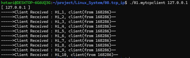 sprintf(tx_buf, "Hello_%d server(from %d)!!\n", i, getpid());