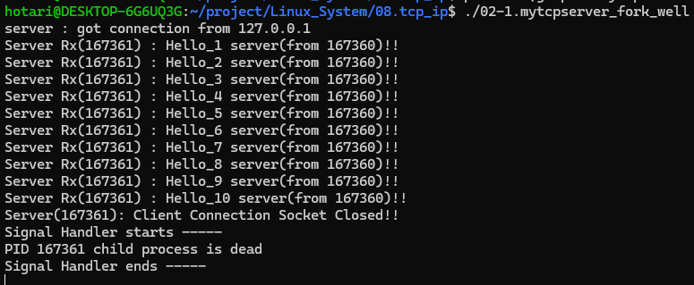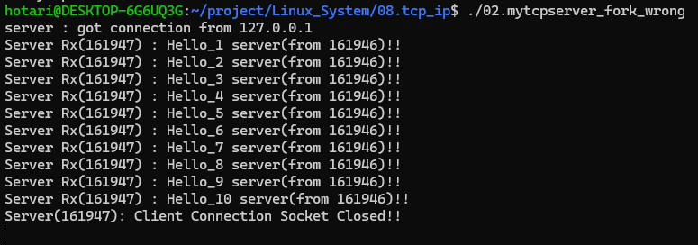 printf("Server(%d): Client Connection Socket Closed!!\n", getpid());