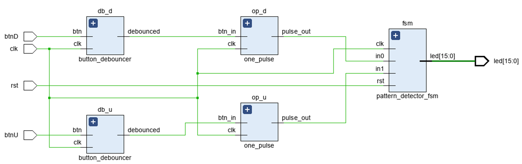 output wire [15:0] led // led[6:0] = 입력 표시, led[7] = 패턴 감지