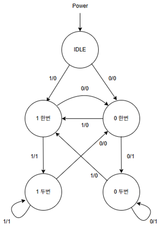 output reg [15:0] led // led[6:0]: 입력 표시, led[14]: 11 감지, led[15]: 00 감지