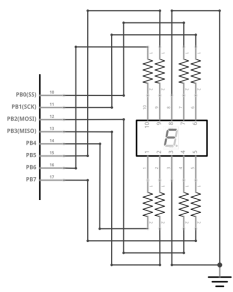 - 8개의 LED를 배치하여 숫자나 문자를 나타낼 수 있도록 만들어진 표시장치