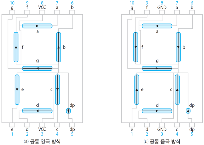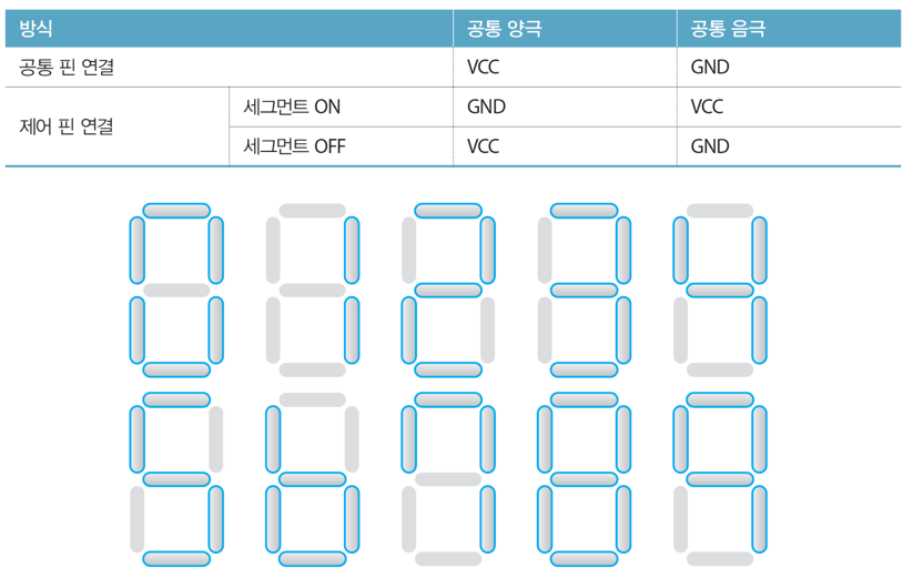 - 각 LED를 흔히 세그먼트라고 일컬음