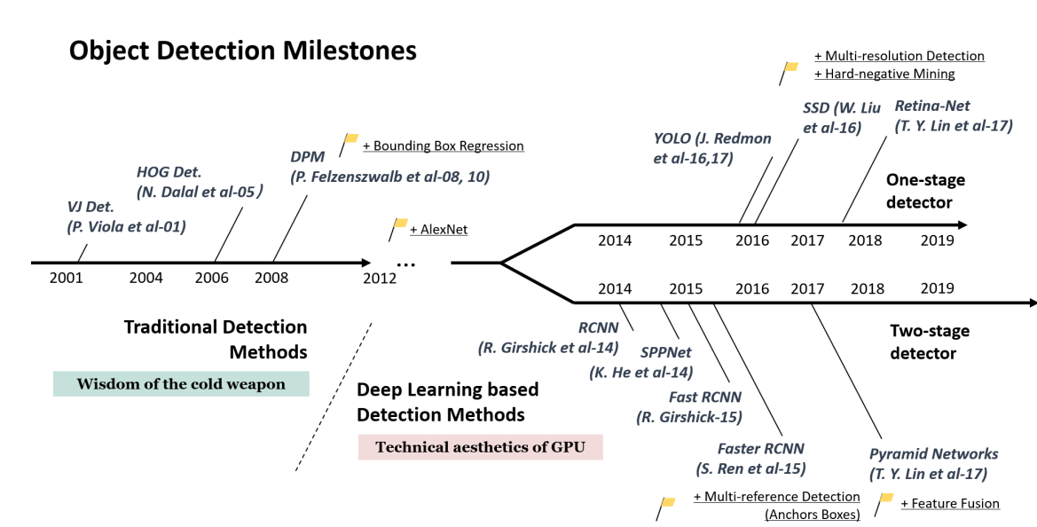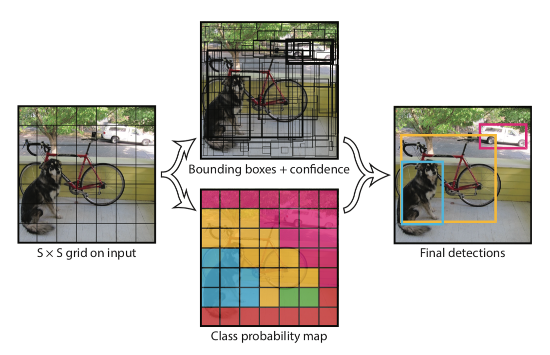 - 2015년 Joseph Redmon 이 아키텍처를 논문과 함께 발표함, 가장 빠른 객체 검출 알고리즘 중 하나
